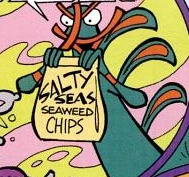 Salty Seas Dried Seaweed Chips is a brand of delicious crunchy chips made from seaweed. They go well with Moogie Cola.